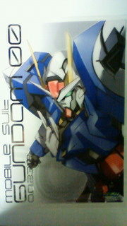 つい最近になって00一期を見始めて「ロックオンかっこいい。兄貴に欲しい」言いまくってる友人さちこ(仮名)からビジュアルアートワークス税込\200なるものをもらいました。写真はそれ。やった!00ガンダム!かっこいい!